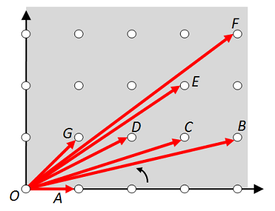 is precisely the gradient of this ray. Then the Farey sequence is obtained by sweeping a ray through the origin, starting at angle
