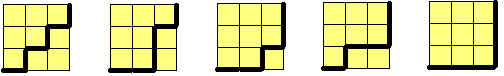 1. Consider an grid. We wish to count the number of paths from the southwest corner to the northeast along the edges of the grid which are (i) shortest, and (ii) remain below the line joining the southwest and northeast corner. E.g. when n=3, we have 5 possible paths: