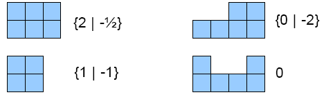 - What about G = {↑ | 1} ? The Left option ↑ has the Right option ↑ → *. Now is * ≤ G ? To answer this question, we look at G – * = G + *. If Right starts this game, he has two options: either G → 1 or * → 0: either way, the result is positive and he loses. So indeed, we have * ≤ G. This means we can replace the option ↑ by all Left options of *, i.e. 0. This gives G = {0 | 1} = 1/2.