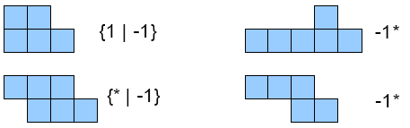 As a special case, a Light domino placed beside a daRk domino forms the game {0 | 0} = *. Now we can calculate the following games: