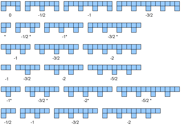 - Contiguous row of n Light dominoes, followed by m dominoes : {n-1 | -(m-1)}.