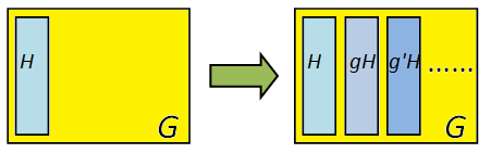 But first, let’s consider cosets. Now, when H is a subgroup of G, it turns out G can be “sliced up” into subsets of equal sizes, one of which is H itself. To put it explicitly, let’s define a (left) coset to be a set of the form:
