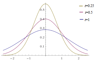 Anyway, the solution (called the heat kernel) for this particular case is really nice. In the 1-D case, this is: