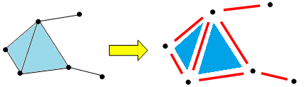 The left step changes (V, E, F) to (V+1, E+1, F) since it adds a vertex and an edge without introducing any new face. The right step changes (V, E, F) to (V, E+1, F+1). In both cases, there is no change to V–E+F. Hence this value is constant across all decompositions of the sphere and picking any single example gives V–E+F=2. ♦