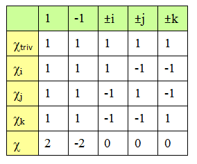 This gives us 4 irreducible representations of dimension 1. Let us compute the character table over C. Since the last character has dimension 2. The other entries are easy to compute: